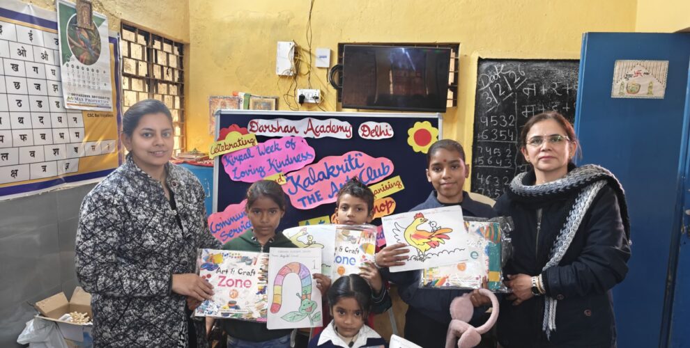 Darshan Academy, Delhi, celebrated Kirpal Week of Loving Kindness with great enthusiasm and compassion. As part of this meaningful celebration, three students, along with Ms. Bindu and Ms. Reena from Kalakiriti – The Art Club (Junior and Senior), participated in a community service activity. The team visited Cigarette Park, Bhamashah Road, where they conducted an art workshop and a colouring competition for underprivileged children. The children participated with great excitement and creativity, expressing their joy through colours and drawings. During the visit, the team donated stationery, art books and canvases, hygiene items such as soap, combs, and toothpaste, and old clothes to the children. Winners of the colouring competition were also awarded prizes. Seeing the bright smiles and enthusiasm on the children’s faces filled everyone’s hearts with joy and satisfaction. The activity truly reflected the spirit of loving kindness, sharing, and service to humanity, making the celebration of Kirpal Week a memorable and meaningful experience.