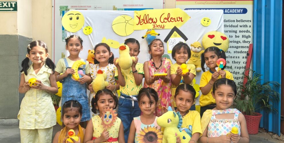 Darshan Academy, Delhi, celebrated Yellow Colour Day among Nursery, LKG and UKG students with great excitement and joy. All the little kids came dressed in bright yellow clothes, making the school look like sunshine. Classrooms were decorated with yellow smiley faces, and students brought yellow objects such as bananas, lemons, mangoes, and toy ducks for show-and-tell.